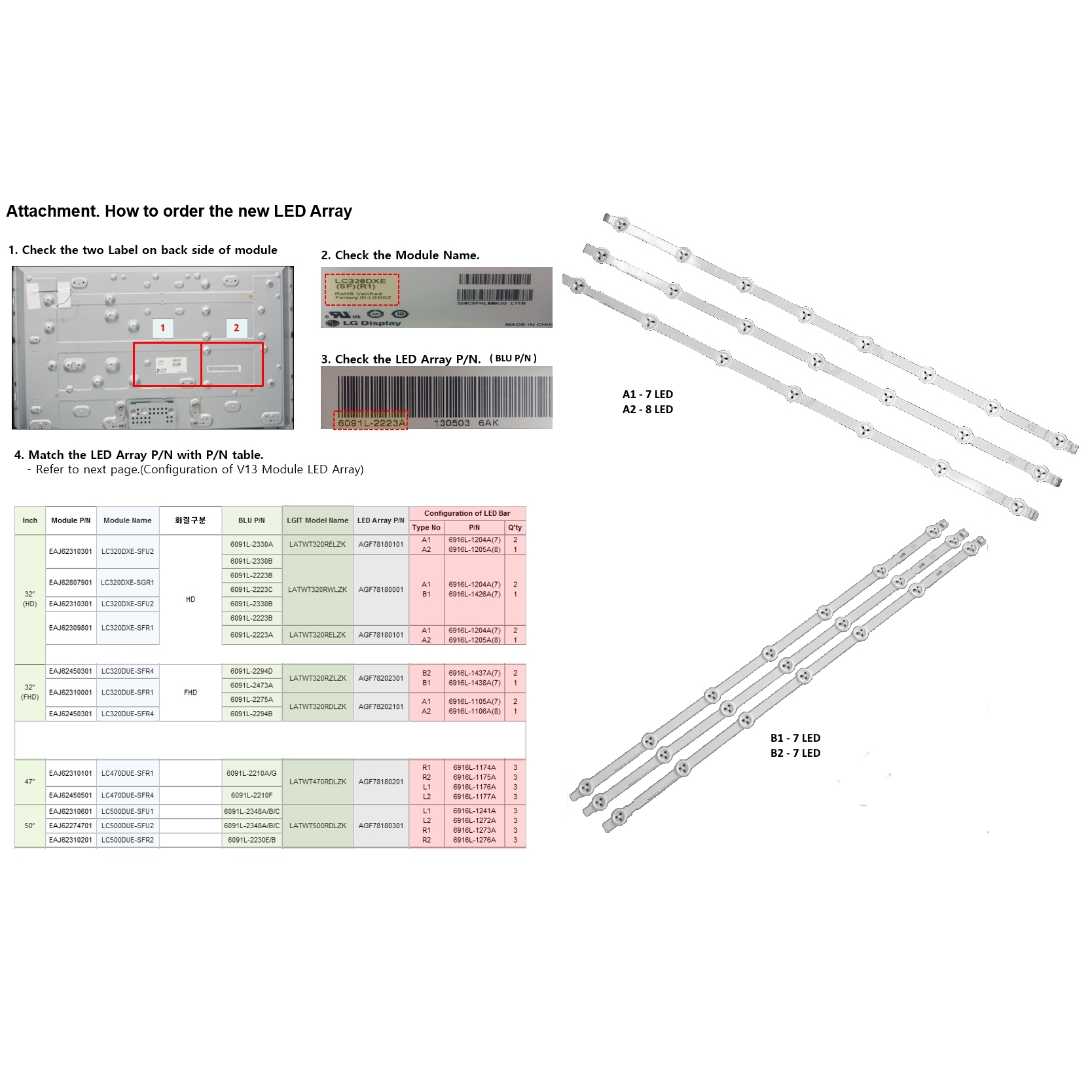 ВНИМАНИЕ: За LC320DUE-SFR1 LC320DUE-SFR4 погледнете стикера под основната платка и направете справка с таблицата в снимката ( възможно е да бъдат и с подсветка AGF78202101)